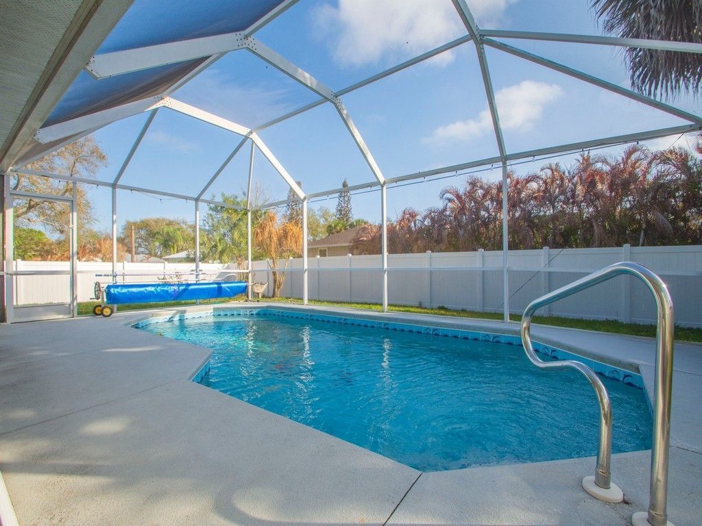 Concrete block pool home built in 2001 w/ new roof 2020, AC 2021, Hot Water 2014, Seamless gutters, 6 vinyl fence, LVP flooring main living areas, new carpet in the bedrooms. New stainless steel appliances. The interior and exterior have been painted. New Pool pump and front lawn sprinklers. Drainfield 2023. You have nothing to do to this beautiful home except move in. You are located minutes to everything that Sebastian has to offer. Restaurants, shopping and of course the waterfront. Enjoy!